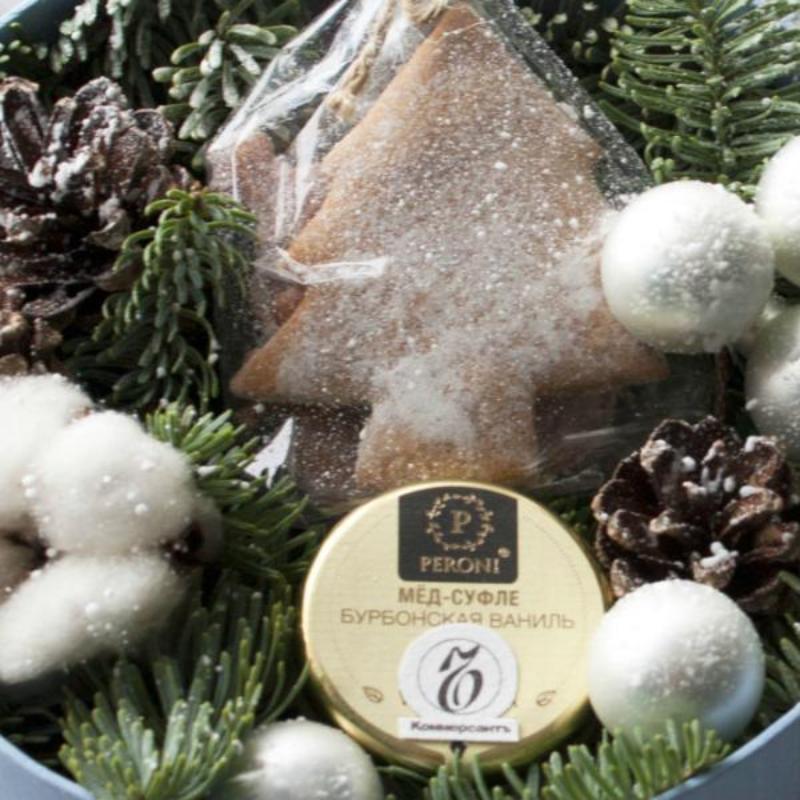 Состав мед-суфле, шишки, имбирные пряники, шарики, хлопок.