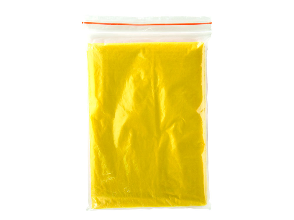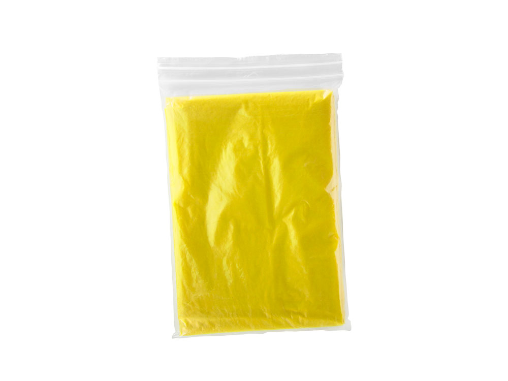 Одноразмерный прозрачный дождевик для взрослых с капюшоном и отверстиями для рук. Поставляется в мешочке из LDPE размером 10 x 13,5 см.
