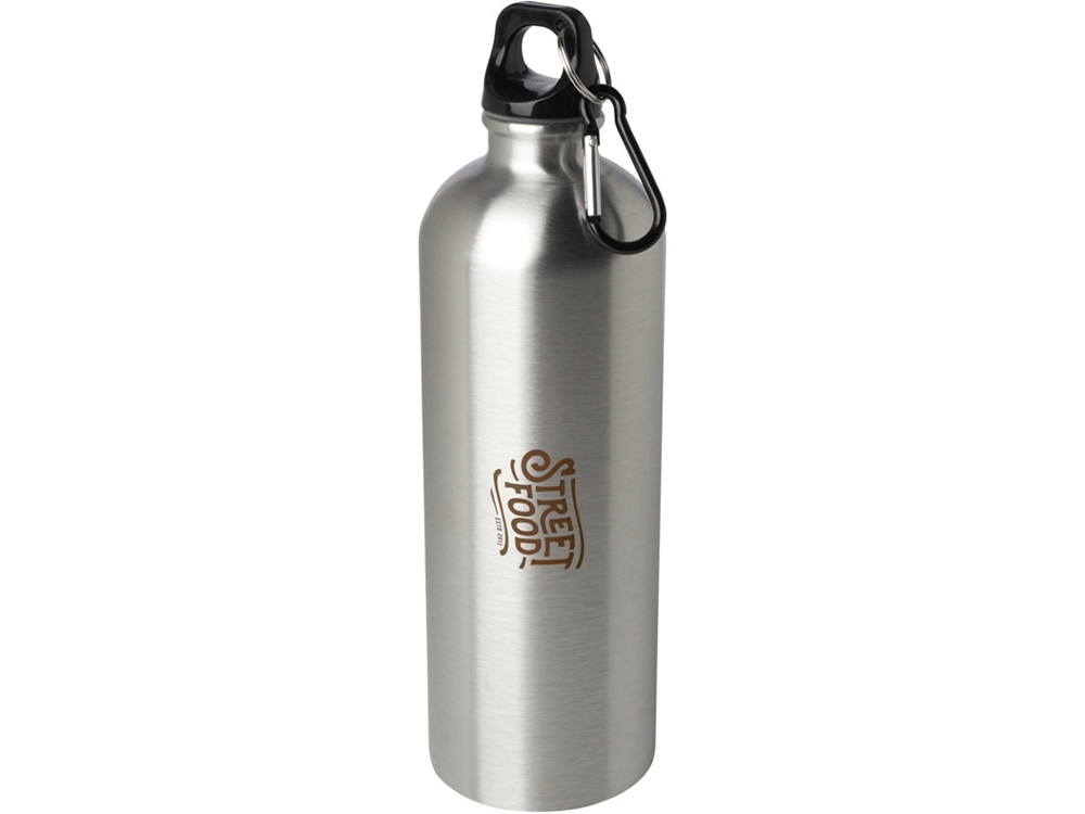 Одностенная бутылка для воды с карабином Oregon, изготовленная из нержавеющей стали, сертифицированной по стандарту RCS, объемом 750 мл - Серебряный купить оптом и в розницу с нанесением логотипа в Нижнем Новгороде