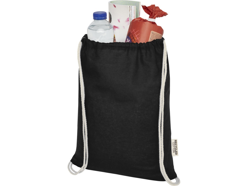 Oregon сумка-кисет из переработанного хлопка, сертифицированного согласно GRS, плотностью 140 г/м² - сплошной черный