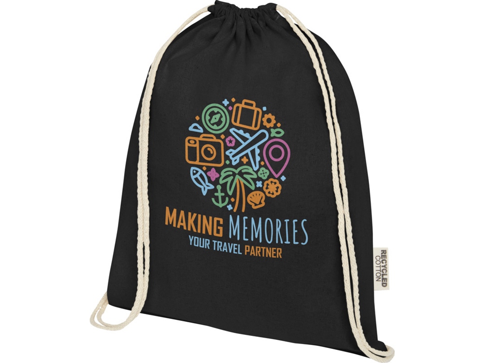 Oregon сумка-кисет из переработанного хлопка, сертифицированного согласно GRS, плотностью 140 г/м² - сплошной черный купить оптом и в розницу с нанесением логотипа в Нижнем Новгороде