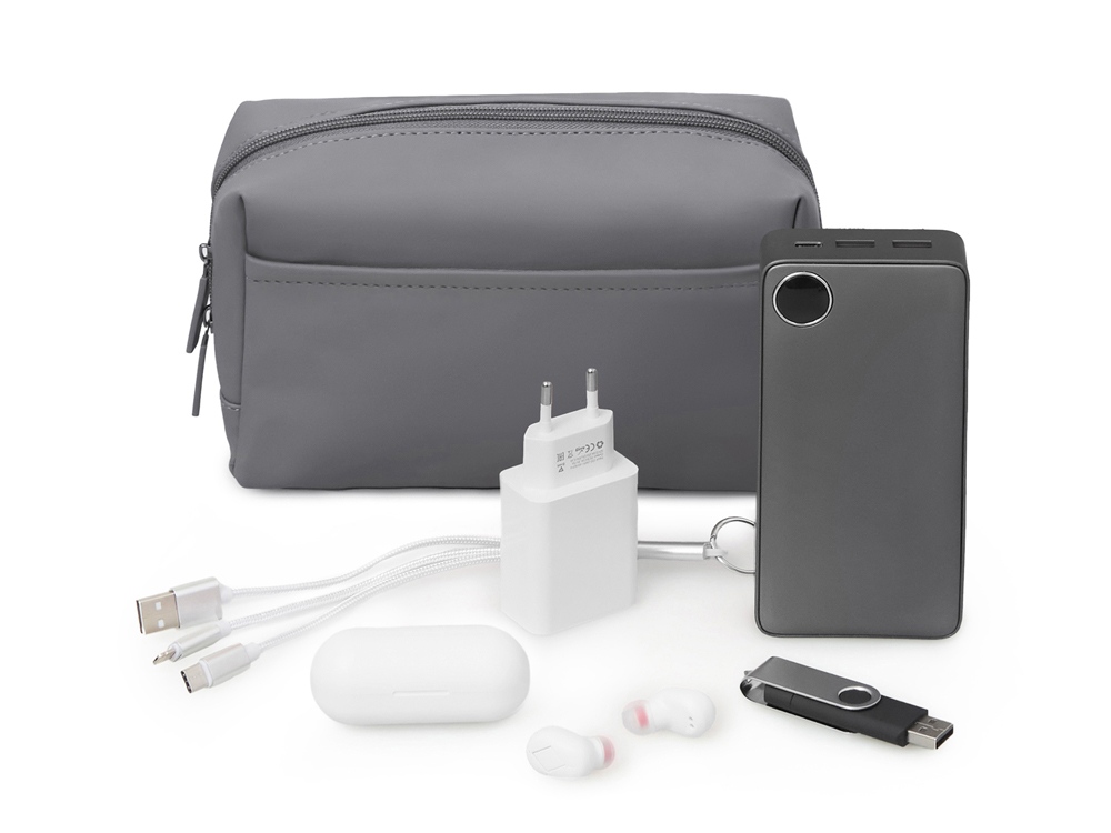 Органайзер для электроники и проводов из искусственной кожи Sofit, серый купить оптом и в розницу с нанесением логотипа в Нижнем Новгороде