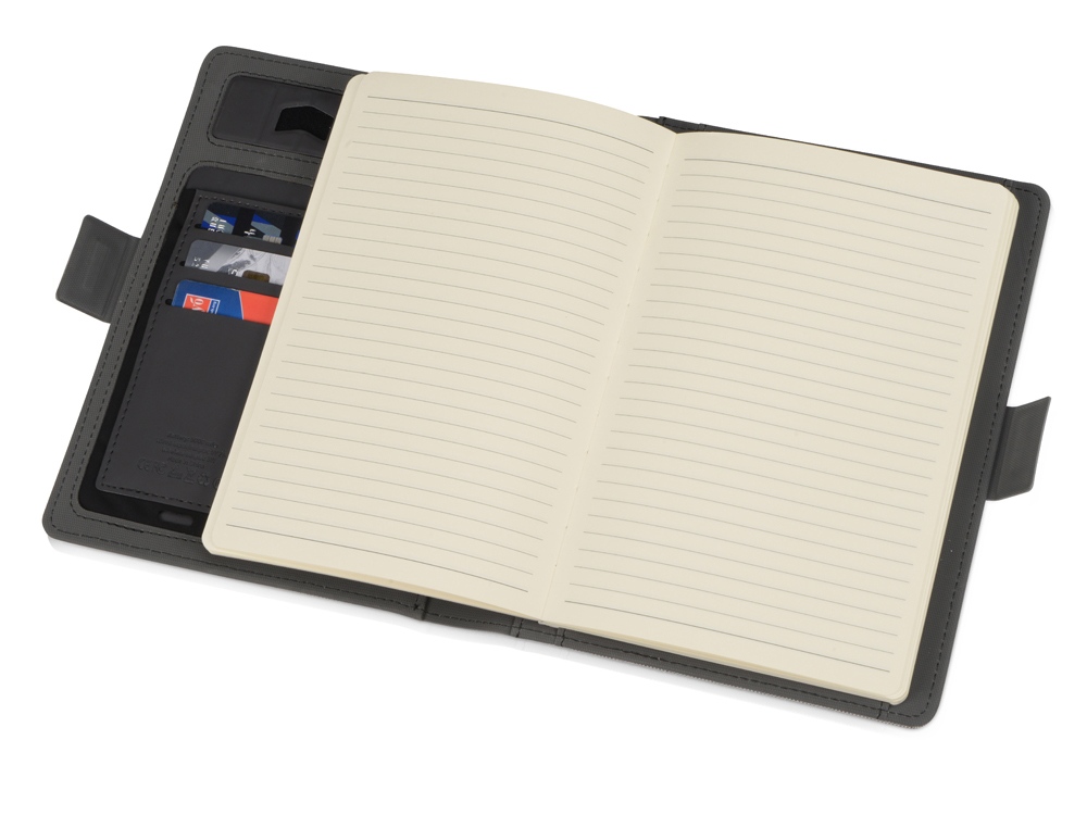 Органайзер Powernote — стильный бизнес-подарок, который в полной мере воплощает идею многофункциональности. С его помощью можно заряжать гаджеты как беспроводным способом, так и через кабель, эргономично хранить целый ряд предметов — от ручек и проводов до кредитных карт — и даже делать записи. Элегантность внешнего вида дополняется приятной текстурой обложки из мягкого полиэстера и высоким качеством внутренней отделки с элементами soft-touch покрытия. Практичный и технологичный аксессуар, который в состоянии заменить сразу несколько вещей. - Встроенный пауэрбанк емкостью 5000 мАh. - Возможность зарядки как беспроводным способом, так и через кабель. - Удобная магнитная застежка. - Качественные материалы. - Отделение для телефона. - Блокнот для записей 64л.