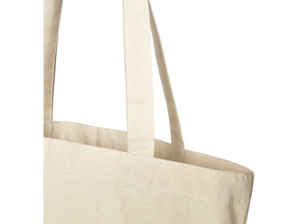 Эко-сумка Orissa с широким дном и длинными ручками, изготовленная из 100% органического хлопка, сертифицированного согласно GOTS, плотностью 270 г/м², станет более ответственным и долговечным выбором для ваших повседневных нужд. Благодаря широкому дну в нем предусмотрено дополнительное место для самых необходимых вещей на любой случай — от похода по магазинам до повседневной прогулки. Объем: 10 литр. Органический хлопок.
