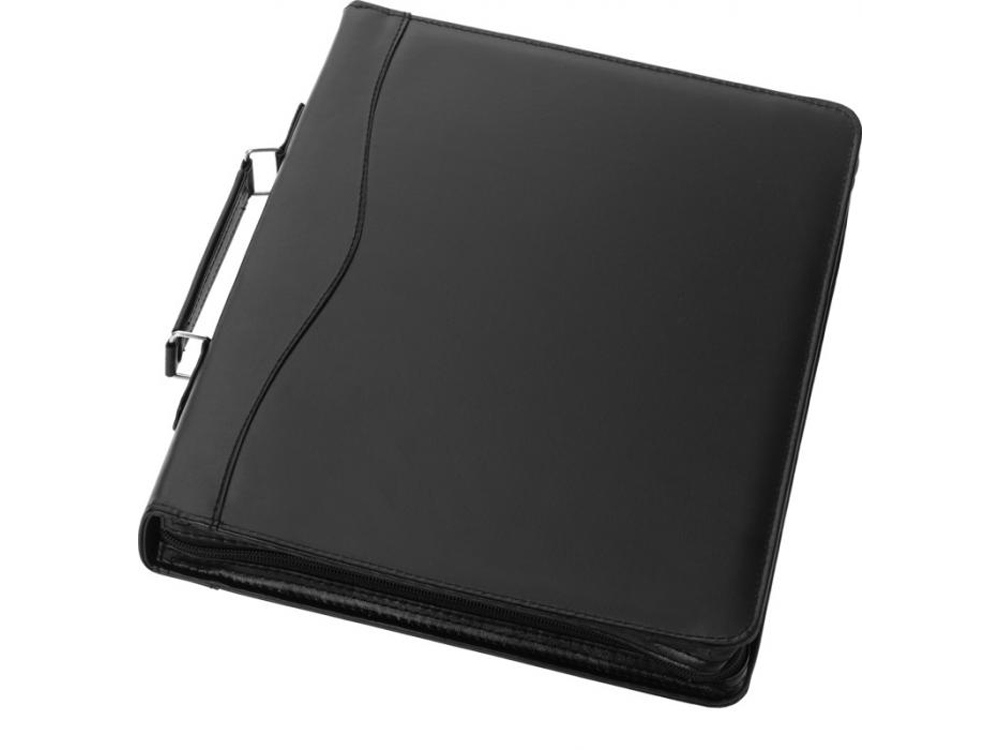 Папка с ручкой, застежкой-молнией, регистратором, карманом на молнии и отделениями для документов. Включает блокнот А4 с 20 страницами линованной бумаги. Ручка и принадлежности не включены.