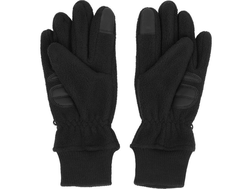 Флисовые перчатки с вязаной манжетой для комфортной посадки по руке - застежка для скрепления перчаток вместе - тачскрин вставки на указательном и большом пальце - накладка на ладошке для укрепления и эргономики - резинка на запястье для лучшего прилегания перчаток по руке