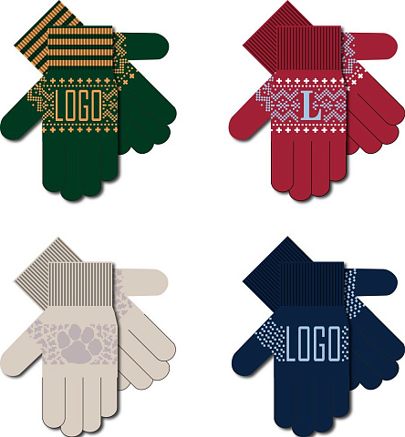 Модель: цельновязанные бесшовные перчатки с эластичной манжетой и жаккардовым узором в 2-3 цвета. Манжета может быть полосатой (горизонтальные полосы 1-2 цветов, без узора и логотипа).