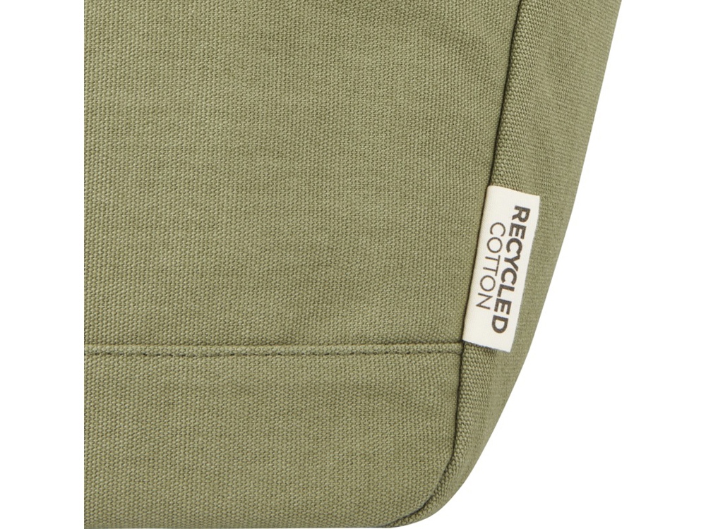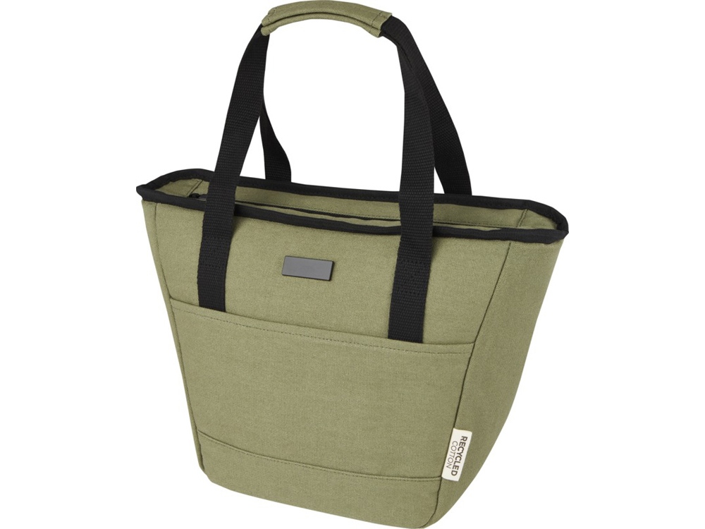 Изготовленная из высокопрочных экологичных материалов, брезента и подкладки из переработанного ПЭТ, соответствующих стандарту GRS, пищевая сумка-холодильник на 9 банок Joey имеет изолированное главное отделение с подкладкой из PEVA, пригодной для применения с пищевыми продуктами, открытый карман спереди и две усиленных вязанных ручки для удобной переноски. Декоративная металлическая пластина может придать логотипу сияние благодаря утонченному матовому покрытию.