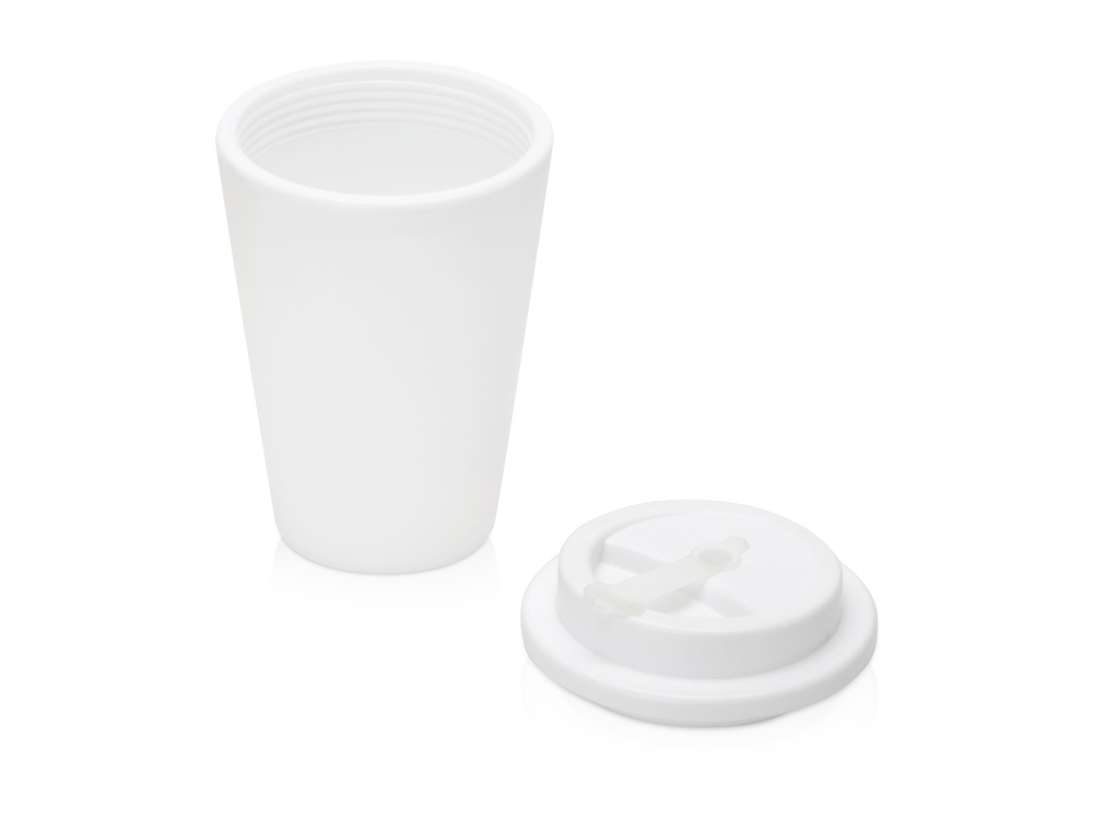 Пластиковый стакан Take away с двойными стенками и крышкой с силиконовым клапаном, 350 мл, белый