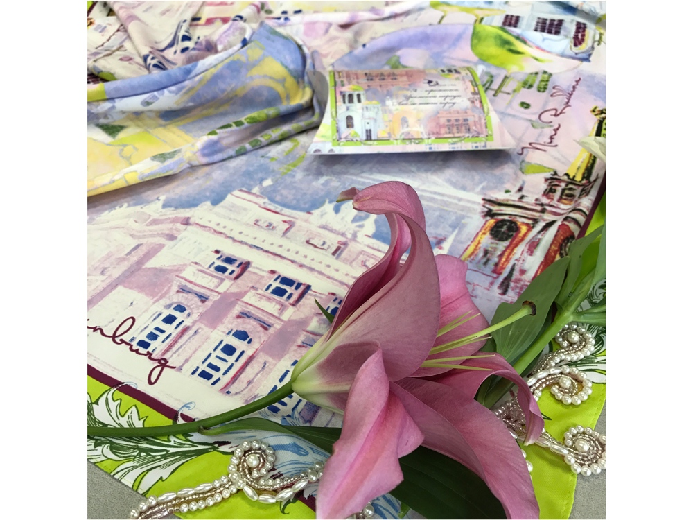 Дамы и господа, представляем вам особенный дизайн, посвящённый городу Екатеринбургу: Я - горожанка. Городская мозаика глазами дизайнера Нины Ручкиной, составленная из узнаваемых и величественных памятников архитектуры города Екатеринбурга, пронизана светом, поэзией, волшебством. Этот город - родной для дизайнера, и поэтому он представлен обителью Музы, наполненной вдохновением, романтикой и любовью. Нежная и безмятежная цветовая гамма изображений представлена в превосходной акварельной работе художника Раиса Файзулина. На платке изображены Храм-Памятник на Крови во имя Всех святых, в земле Российской просиявших, здание Администрации города Екатеринбурга, Екатеринбургский Государственный академический Театр Оперы и Балета. Советы по уходу: -Наши платки сделаны с душой и нуждаются в ответной душевной заботе и внимании. -Они практически не мнутся, очень приятные на ощупь, нежные и мягкие. Любят бывать на людях, посещать светские мероприятия, не выносят одиночества. -Всегда готовы к экспериментам и смелым сочетаниям. Прослужат верой и правдой долгие годы, никогда не выйдут из моды и всегда будут уместны и кстати. -Ручная стирка 40 градусов.