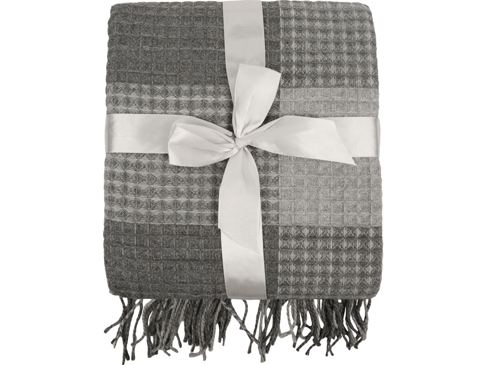 Теплый плотный плед из акрила, украшенный бахромой, имеет приятную на ощупь текстуру поверхности и создает атмосферу комфорта и уюта.