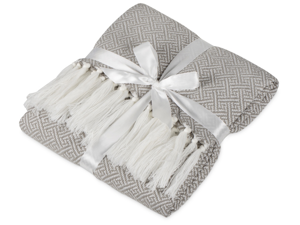 Мягкий плед с бахромой универсальной расцветки отлично впишется в любой интерьер, а благодаря способности акрила хорошо удерживать тепло, он согреет в прохладную погоду дома, на даче или в путешествии. Отличный подарок к любому торжеству!