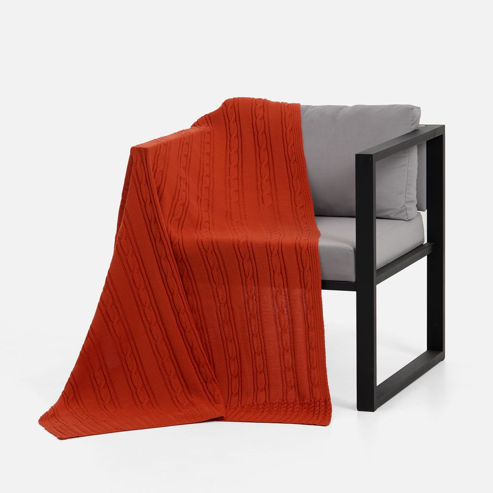 Тонкое переплетение вертикальных кос-жгутов создает благородную фактуру, где простота линий встречается с изысканной текстурой. Плед из мягкого акрила сохраняет тепло, оставаясь удивительно легким и воздушным.