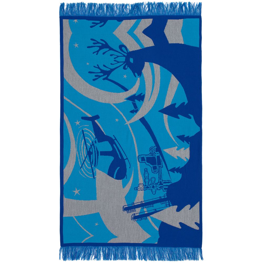 Плед с вывязанным логотипом и индивидуальным рисунком в фирменной цветовой гамме.