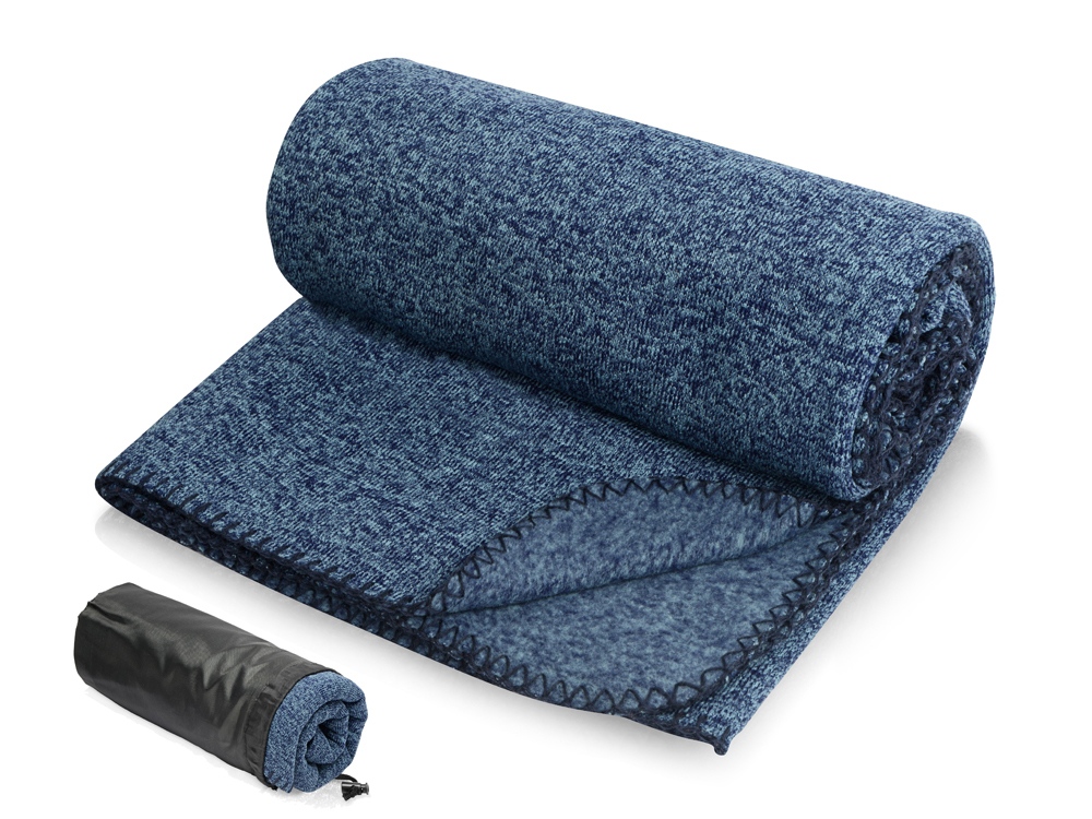 Теплый и плотный вязаный плед согреет в прохладный день. В комплекте черный мешок размером 325*130 мм на шнурке - удобно хранить и брать в дорогу.