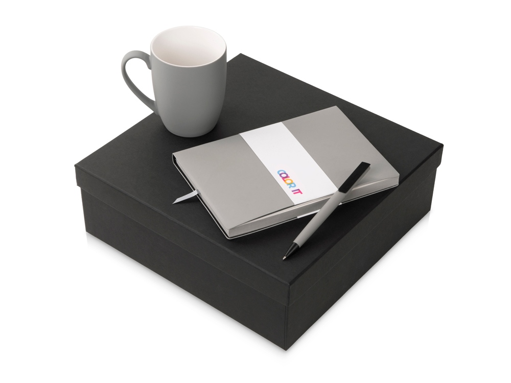 Color It — линейка, в которую входят хиты мерча в десяти самых популярных цветах. Еще никогда собрать сет под свой брендбук не было так просто. Широкая цветовая палитра серии позволяет создать идеальный набор в едином оттенке Pantone. Все товары имеют тактильно приятное покрытие софт-тач. Сет поставляется в коробке: мы продумали все, включая подарочную упаковку, за вас — осталось нанести лого! Фарфоровая кружка с удобной ручкой брендируется методом гравировки, поэтому нанесение будет долговечным и не сотрётся при мытье кружки. Бизнес-блокнот в гибкой обложке имеет ляссе в тон обложки и среза. Бумажный блок разлинован в линейку и выполнен из бумаги, полученной из древесины из специальных восполняемых лесных ресурсов, имеет сертификат FSC. Тонкое письмо ручки обеспечивается пишущим узлом с толщиной письма 0,5 мм с нажимным механизмом. Ручка имеет сменный стержень, поэтому такой мерч прослужит дольше обычной одноразовой ручки, долго напоминая о вас клиентам. - объём кружки: 300 мл; - блокнот А5 128 листов; - ручка с необычным слайдером; - подарочная упаковка из картона, оклеенного дизайнерской бумагой уже включена в набор.