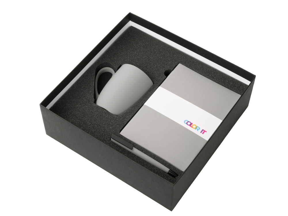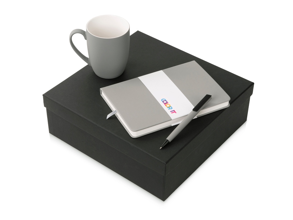 Color It — линейка, в которую входят хиты мерча в десяти самых популярных цветах. Еще никогда собрать сет под свой брендбук не было так просто. Широкая цветовая палитра серии позволяет создать идеальный набор в едином оттенке Pantone. Все товары имеют тактильно приятное покрытие софт-тач. Сет поставляется в коробке: мы продумали все, включая подарочную упаковку, за вас — осталось нанести лого! Фарфоровая кружка с удобной ручкой брендируется методом гравировки, поэтому нанесение будет долговечным и не сотрётся при мытье кружки. Бизнес-блокнот в твёрдой обложке имеет ляссе в тон обложки и среза. Бумажный блок разлинован в линейку и выполнен из бумаги, полученной из древесины из специальных восполняемых лесных ресурсов, имеет сертификат FSC. Тонкое письмо ручки обеспечивается пишущим узлом с толщиной письма 0,5 мм с нажимным механизмом. Ручка имеет сменный стержень, поэтому такой мерч прослужит дольше обычной одноразовой ручки, долго напоминая о вас клиентам. - объём кружки: 300 мл; - блокнот А5 128 листов; - ручка с необычным слайдером; - подарочная упаковка из картона, оклеенного дизайнерской бумагой уже включена в набор