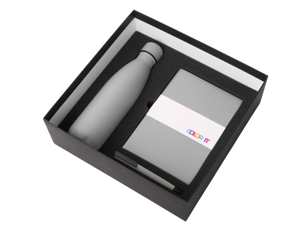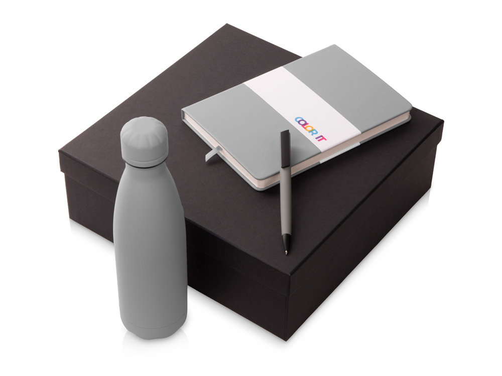 Color It — линейка, в которую входят хиты мерча в десяти самых популярных цветах. Еще никогда собрать сет под свой брендбук не было так просто. Широкая цветовая палитра серии позволяет создать идеальный набор в едином оттенке Pantone. Все товары имеют тактильно приятное покрытие софт-тач. Сет поставляется в коробке: мы продумали все, включая подарочную упаковку, за вас — осталось нанести лого! Классическая форма термобутылки сочетается с продуманной и технологичной конструкцией: вакуумная теплоизоляция и двойные стенки бутылки обеспечивают качественное сохранение температуры напитка до 24-х часов! Блокнот имеет твёрдую обложку и 256 страниц в линейку, даты не указаны, что позволяет начать вести блокнот в любой удобный день года. Ляссе окрашено в тон обложки. Тонкое письмо ручки обеспечивается пишущим узлом с толщиной письма 0,5 мм с нажимным механизмом. - бумага соответствует стандартам FSC; - софт-тач покрытие на всех предметах набора; - объём бутылки: 500 мл; - подарочная упаковка с дизайнерской бумагой уже включена в набор.