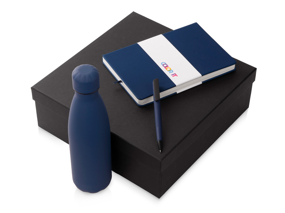 Color It — линейка, в которую входят хиты мерча в десяти самых популярных цветах. Еще никогда собрать сет под свой брендбук не было так просто. Широкая цветовая палитра серии позволяет создать идеальный набор в едином оттенке Pantone. Все товары имеют тактильно приятное покрытие софт-тач. Сет поставляется в коробке: мы продумали все, включая подарочную упаковку, за вас — осталось нанести лого! Классическая форма термобутылки сочетается с продуманной и технологичной конструкцией: вакуумная теплоизоляция и двойные стенки бутылки обеспечивают качественное сохранение температуры напитка до 24-х часов! Блокнот имеет твёрдую обложку и 256 страниц в линейку, даты не указаны, что позволяет начать вести блокнот в любой удобный день года. На нахзаце расположен карман для мелочей. Ляссе окрашено в тон обложки. На обложке блокнота есть магнитный держатель для металлических ручек. Тонкое письмо ручки обеспечивается пишущим узлом с толщиной письма 0,5 мм с нажимным механизмом. - бумага соответствует стандартам FSC; - софт-тач покрытие на всех предметах набора; - объём бутылки: 500 мл; - подарочная упаковка с дизайнерской бумагой уже включена в набор.