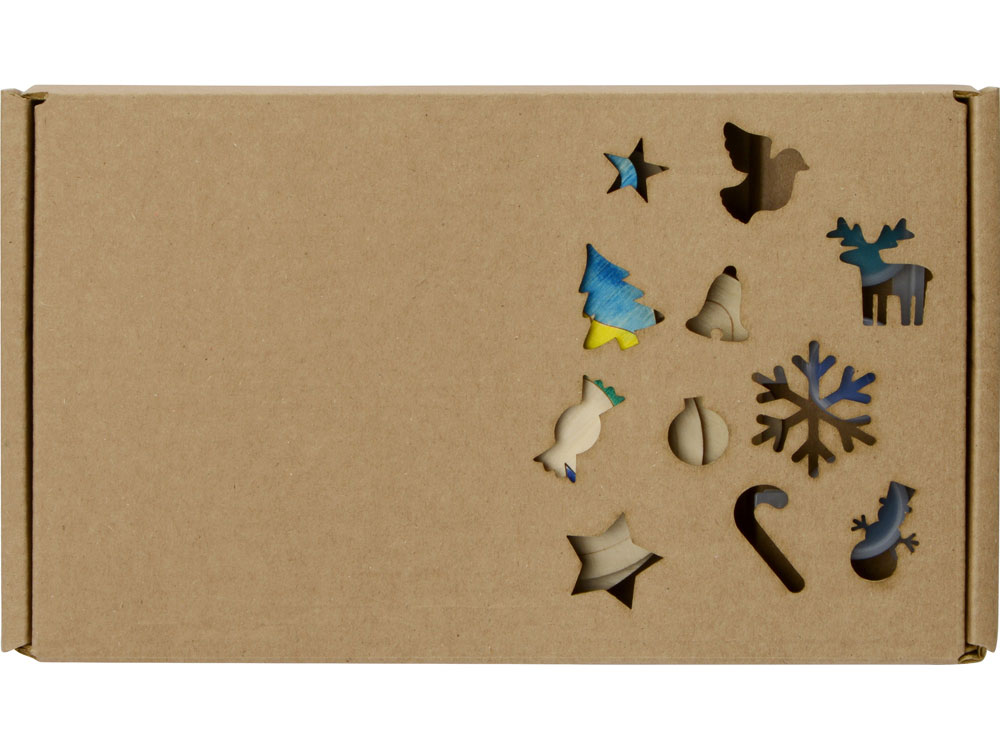 Подарочный новогодний набор для раскрашивания прекрасно подойдет как для детей, так и для взрослых, создаст праздничное настроение для всей семьи не только на вечер, но и на весь период зимних праздников. Фигурки в виде традиционных новогодних атрибутов выполнены из березовой фанеры и хорошо сочетаются с гуашью, которая идет в комплекте. Для раскрашивания приложены краски шести цветов, которые можно смешивать для создания новых оттенков, а также кисточка. Набор упакован в коробку, украшенную вырубкой. Ленты для игрушек в набор не входят.
