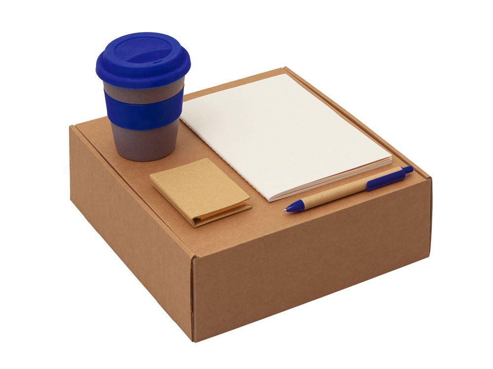 Материал товара блокнот- бумага из переработанных тетра-паков, ручка- картон, пластик, стакан- 50% бамбуковое волокно, 50% полипропилен, коробка- картон