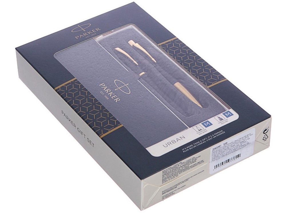 Специальное предложение! Набор из двух ручек в подарочной коробке с дополнительной скидкой! Набор состоит из ручки перьевой + чернила синего цвета, шариковой ручки+стержень синего цвета, подарочная коробка на две ручки и все это укладывается в презентабельную фирменную коробку. Размер подарочного футляра, мм (ДхШхВ) 175х50х36 мм, размер фирменной упаковки набора мм (ДхШхВ) 230х150х36мм набор из коллекции URBAN - в состав набора входит стильная шариковая ручка и перьевая нового поколения, которые заставляют заново взглянуть на процесс письма в современном мире и устанавливает новые правила. Они сочетают эргономичность со стилем, обладая необычной пулеобразной формой и идеальным балансом для письма. Там где имидж - все, а качество - ключевое слово, выберите современные ручки для современной жизни. Parker Urban - создан, чтобы поражать, сконструирован, чтобы работать.