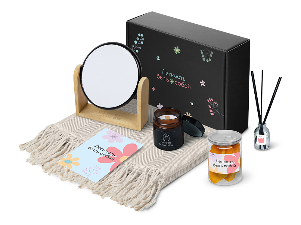 Наборы серии Re: напоминают: важнее всего человек, а не его роль. Они дарят возможность замедлиться и насладиться настоящим. Каждый набор — как мини-ритуал: согреться, почувствовать себя, поблагодарить и восстановиться после дней, полных скорости, дедлайнов и шума. Re:f. — наборы для неё, наборы для мягкой гармонии и перезагрузки, которые дарят возможность замедлиться, восстановить ресурс и почувствовать заботу в каждом моменте. Re:f. Shelter — о чувстве защищённости и тихом пространстве для себя. Укутайтесь в плед, зажгите свечу, пусть диффузор наполнит комнату мягким ароматом — так создаётся настроение покоя и уюта. Зеркало становится маленькой деталью внимания к себе, а сушёное манго добавляет солнечную, тёплую нотку, напоминая о простых радостях. Этот набор — про личное укрытие, где можно выдохнуть, замедлиться и просто побыть в моменте.