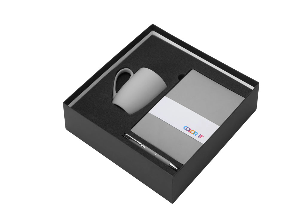 | Материал товара | блокнот - искусственная кожа с покрытием софт-тач, ручка - алюминий с покрытием софт-тач, кружка - фарфор с покрытием софт-тач, коробка - картон |