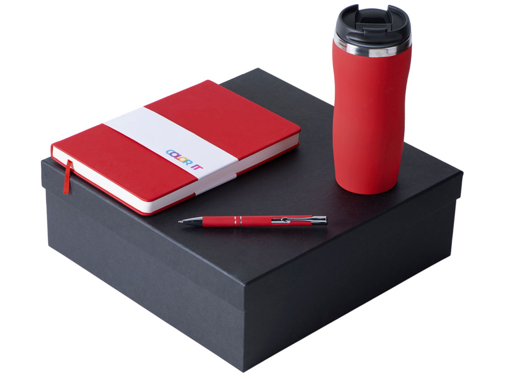 Color It — линейка, в которую входят хиты мерча в десяти самых популярных цветах. Еще никогда собрать сет под свой брендбук не было так просто. Широкая цветовая палитра серии позволяет создать идеальный набор в едином оттенке Pantone. Все товары имеют тактильно приятное покрытие софт-тач. Сет поставляется в коробке: мы продумали все, включая подарочную упаковку, за вас — осталось нанести лого! Термокружка оснащена плотно завинчивающейся крышкой, которая исключает проливание содержимого. Откидной клапан позволяет пить, не снимая крышку. Сохранение температуры осуществляется благодаря вакуумной изоляции и двойным стенкам. Бизнес-блокнот в твёрдой обложке с магнитным держателем для ручки имеет ляссе в тон обложки. Бумажный блок разлинован в линейку и выполнен из бумаги, полученной из древесины из специальных восполняемых лесных ресурсов, имеет сертификат FSC. Шариковая ручка имеет сменный стержень, поэтому такой мерч прослужит дольше обычной одноразовой ручки, долго напоминая о вас клиентам. - софт-тач покрытие на всех предметах набора; - объём термокружки: 350 мл; - блокнот А5 128 листов; - ручка с необычным слайдером; - подарочная упаковка из картона, оклеенного дизайнерской бумагой уже включена в набор.