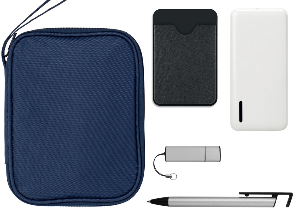 Шариковая ручка может использоваться не только для записей, но и как компактная подставка для смартфона. Просто положите ручку на стол или любую другую поверхность и зафиксируйте смартфон в горизонтальном положении. Металлическая флешка в окрашенном корпусе с колпачком имеет крепление для переноски. Практичный органайзер для проводов и электроники имеет ремешок для переноски. Внутри - 4 отсека на резинках, которые отлично подходят для упорядоченного хранения различных кабелей, переходников и гаджетов. Ультракомпактный повербанк поместится в любом кармане и удобно ляжет в руку. Внешний аккумулятор имеет 2 входных разъема (micro USB, USB-C) и один выходной разъем USB. В комплекте кабели micro USB, USB-C, Lightning / iPhone. Картхолдер легко приклеивается к задней стороне корпуса телефона, позволяя всегда держать карту или проездной под рукой. - емкость повербанка 5000 mAh; - многоуровневая интеллектуальная система защиты повербанка для безопасной зарядки; - повербанк, флешка и органайзер будут незаменимы в путешествии; - полезный подарок на гендерные праздники.