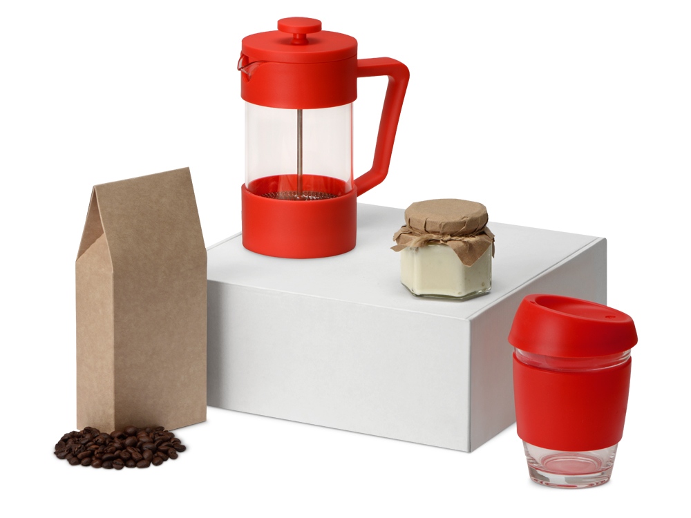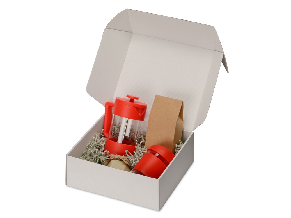 | Цвет товара | френч-пресс- прозрачный/красный, стеклянный стакан- прозрачный/красный, упаковка кофе- крафт, бумажный наполнитель- серый |