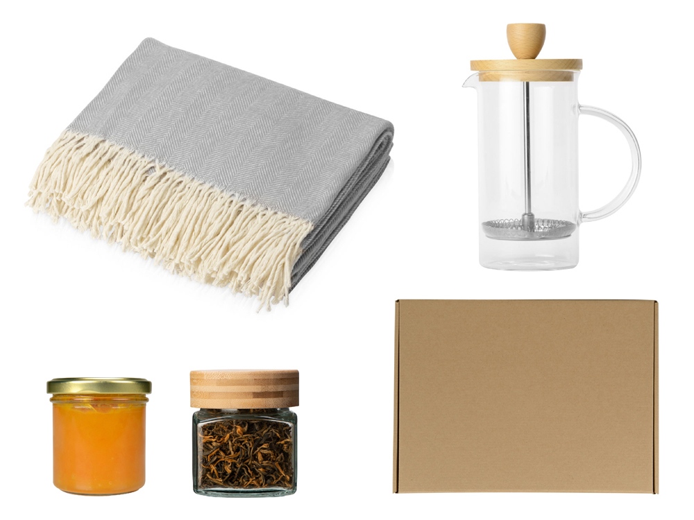 | Материал товара | плед - 100% хлопок, чай - банка -стекло, крышка- дерево, френч-пресс - боросиликатное стекло, буковое дерево, нержавеющая сталь 304 марки, коробка - картон |