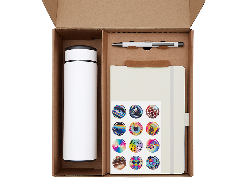 | Материал товара | термос - нержавеющая cталь с покрытием софт-тач, блокнот - искусственная кожа с покрытием софт-тач, ручка - металл с покрытием софт-тач, чай - крафт-пакет, стикеры - смола, держатель для телефона - пластик, коробка - картон |