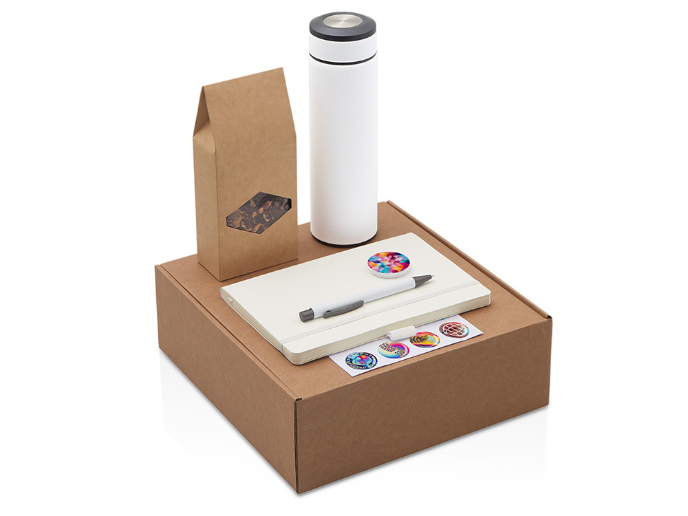 Набор Warmpage станет отличным подарком для сотрудников, клиентов и партнёров, подчеркнёт внимание к их комфорту и заботу о деталях. Он уместен как корпоративный подарок на праздники, юбилеи и деловые мероприятия, так и в качестве welcome-набора для новых коллег. Набор объединяет всё необходимое для комфортного и уютного рабочего дня: Блокнот для идей, заметок и планов на день; Ручка, которая всегда под рукой; Термос, объёмом 420 мл. позволит любимому напитку всегда оставаться горячим; Чай Глинтвейн, который подарит энергию и настроение; Попсокет для удобного удержания смартфона и комфортного использования; Набор стикеров — для ярких акцентов и персонализации вещей. Универсальный ложемент обеспечивает аккуратное размещение и надёжную фиксацию элементов, делая набор эффектным и презентабельным при вручении. Дополнительное преимущество — набор доступен в конструкторе наборов: компоненты можно заменить и собрать индивидуальный вариант под стиль компании или вкусы получателя.