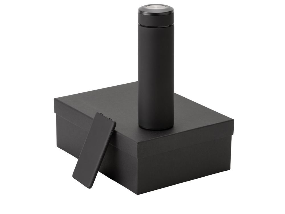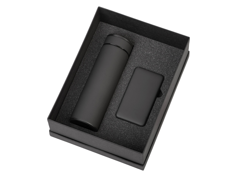 Подарочный набор с термосом и повербанком С1, черный купить оптом и в розницу с нанесением логотипа в Нижнем Новгороде