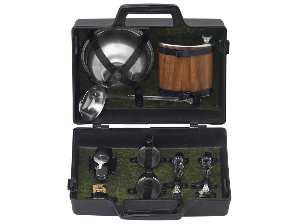 Погрузитесь в мир активного отдыха с нашим подарочным набором, созданным для любителей природы и приключений! Этот комплект содержит все необходимое для комфортного и практичного времяпрепровождения на свежем воздухе. Вас ждут: - 6 мисок из нержавеющей стали (500 мл) — легкие и долговечные, идеально подходят для порционных блюд и закусок. - 6 вилок и 6 ложек из нержавеющей стали — надежные и стильные столовые приборы, которые сделают прием пищи удобным и приятным. - 6 стопок из нержавеющей стали — для дружеских тостов и веселых встреч на природе. - Половник — необходимый аксессуар для сервировки супов и горячих блюд. - Фляжка — для хранения ваших любимых напитков и поддержания жажды во время активного отдыха. - Складной туристический нож — многофункциональный инструмент для приготовления пищи и решения повседневных задач. - Зажигалка — для быстрого разжигания костра и создания уюта. Все элементы набора выполнены из качественной нержавеющей стали, что обеспечивает долговечность и легкость в уходе. Упакованы в пластиковый кейс и надежно закреплены ремешками из натуральной кожи, что обеспечивает удобство транспортировки и сохранность содержимого.