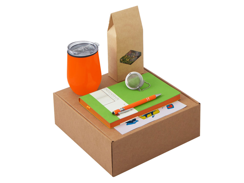Набор Writea станет отличным подарком для сотрудников, клиентов и партнёров, подчеркнёт внимание к их комфорту и заботу о деталях. Он уместен как корпоративный подарок на праздники, юбилеи и деловые мероприятия, так и в качестве welcome-набора для новых коллег. Набор объединяет всё необходимое для комфортного рабочего дня: Ежедневник для идей, заметок и составления рабочих планов на день. В ежедневнике есть полезная справочная информация; Ручка, которая всегда под рукой; Практичная термокружка Pot отлично подойдет для использования как дома, так и в офисе, сохраняет тепло до 3-х часов; Ситечко для заваривания — незаменимая вещь для любителей чая. Оно помогает сохранить истинный вкус и аромат напитка, позволяя наслаждаться настоящим листовым чаем без лишних хлопот. Компактное и удобное, ситечко подходит для дома, работы, путешествий или отдыха на природе; Чай Малина с мятой - идеально подходит для вечернего расслабления после насыщенного дня; Набор стикеров — для ярких акцентов и персонализации вещей; Универсальный ложемент обеспечивает аккуратное размещение и надёжную фиксацию элементов, делая набор эффектным и презентабельным при вручении. Дополнительное преимущество — набор доступен в конструкторе наборов: компоненты можно заменить и собрать индивидуальный вариант под стиль компании или вкусы получателя.