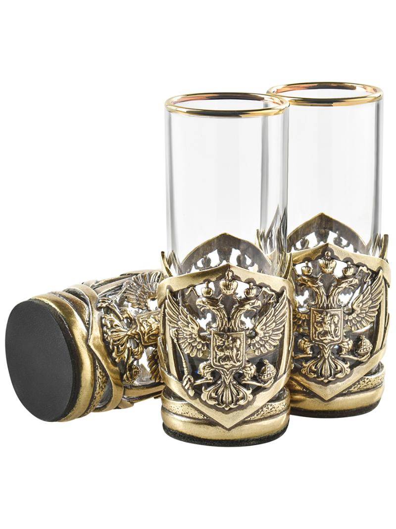 • Комплект включает шесть стопок и штоф с изысканной накладкой Герб РФ