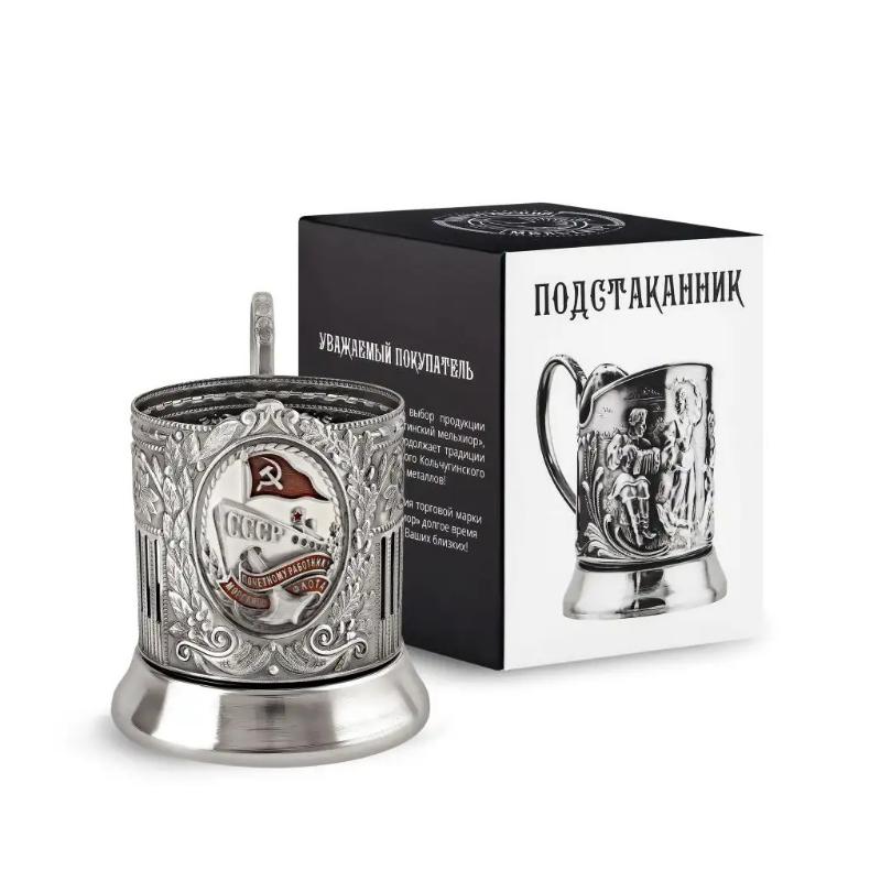Купить Подстаканник "Почетному работнику Морфлота" никелированный с чернью с эмалью в интернет-магазине в Нижнем Новгороде
