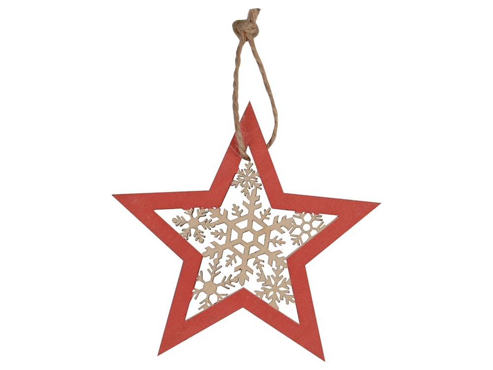 Оригинальное елочное украшение в виде звездочки. Подвеска выполнена из березовой фанеры и тонирована в красный цвет. Это елочное украшение – отличный вариант для экоелки. Не хотите использовать елочные игрушки из пластика или стекла? Деревянные сувениры из нашего каталога станут отличным украшением, которые создадут атмосферу уюта в вашем доме.