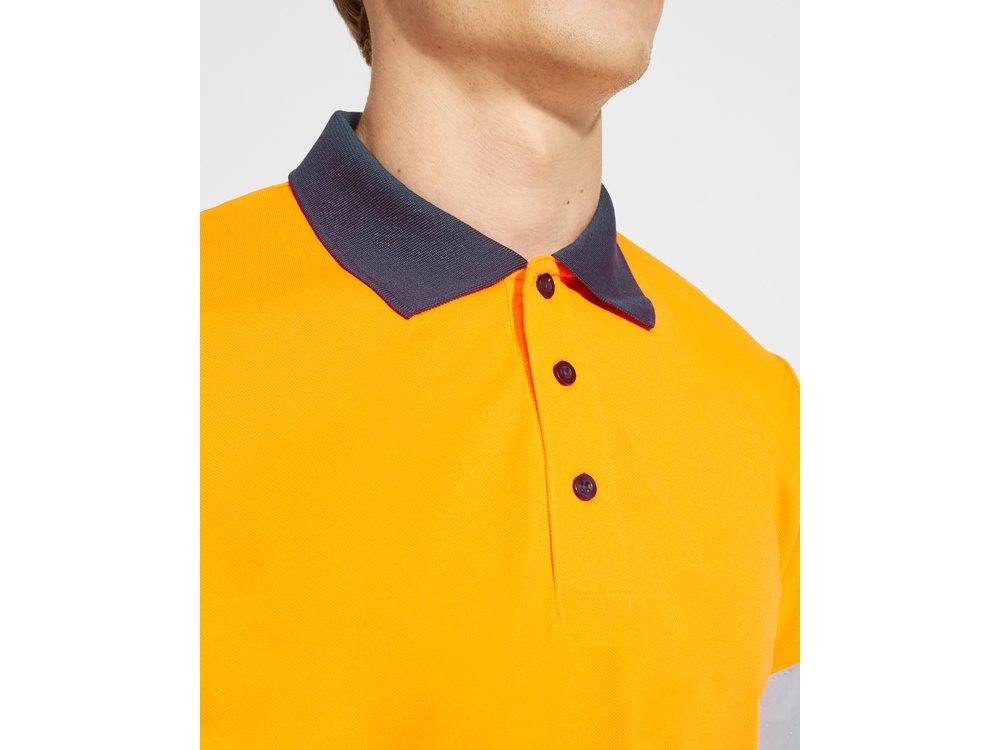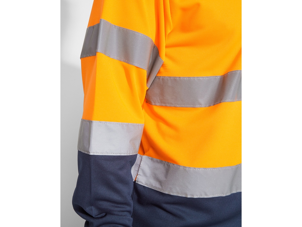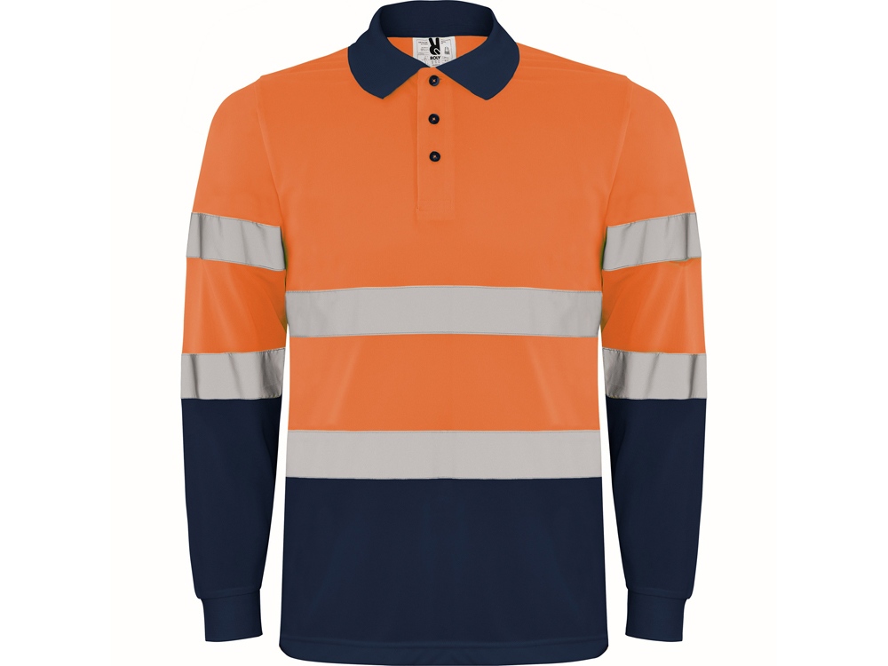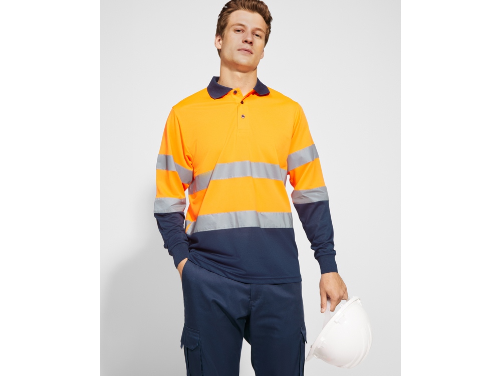 Техническая рубашка поло с длинными рукавами. Планка на 3 пуговицы. Воротник и манжеты в рубчик 1 x 1. Две горизонтальные светоотражающие полосы на туловище и рукавах. Ткань предотвращает зацепление.