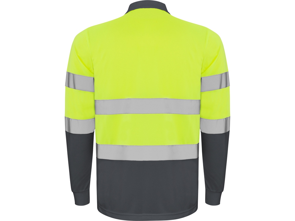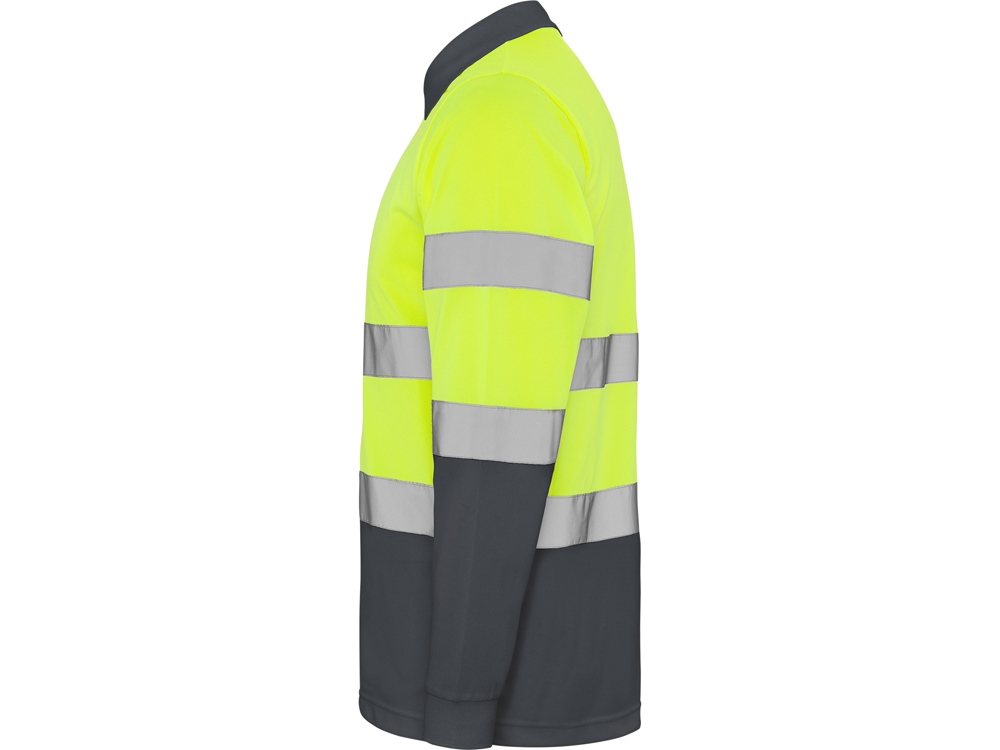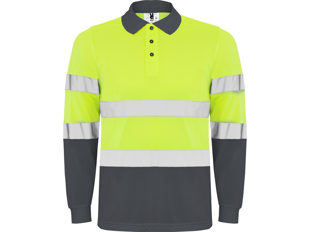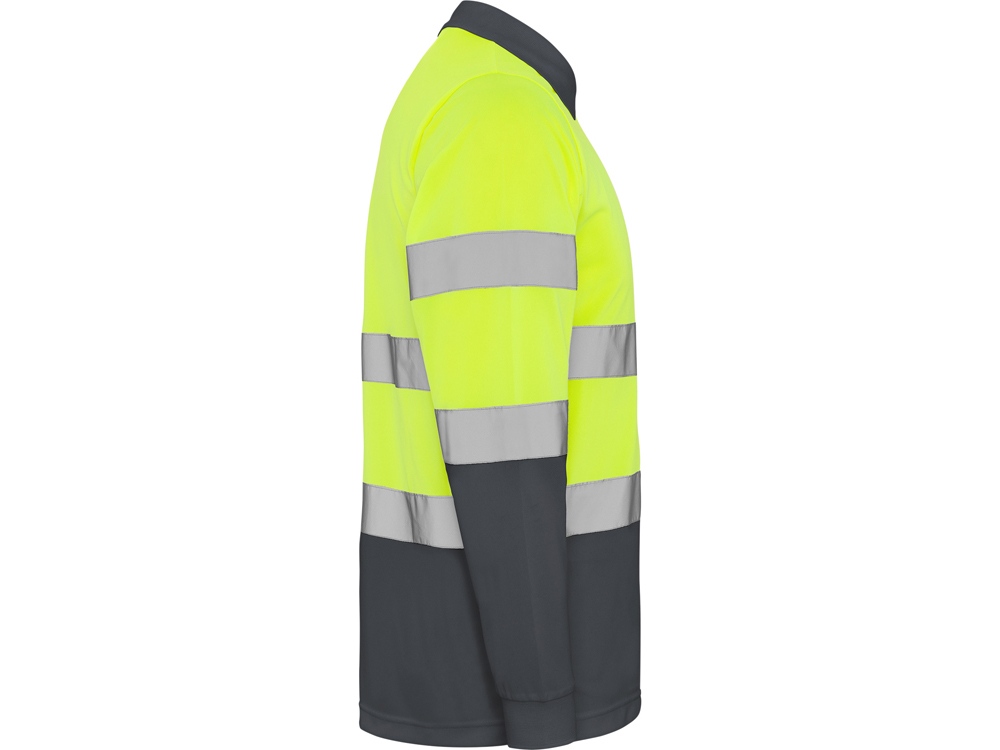 Техническая рубашка поло с длинными рукавами. Планка на 3 пуговицы. Воротник и манжеты в рубчик 1 x 1. Две горизонтальные светоотражающие полосы на туловище и рукавах. Ткань предотвращает зацепление.