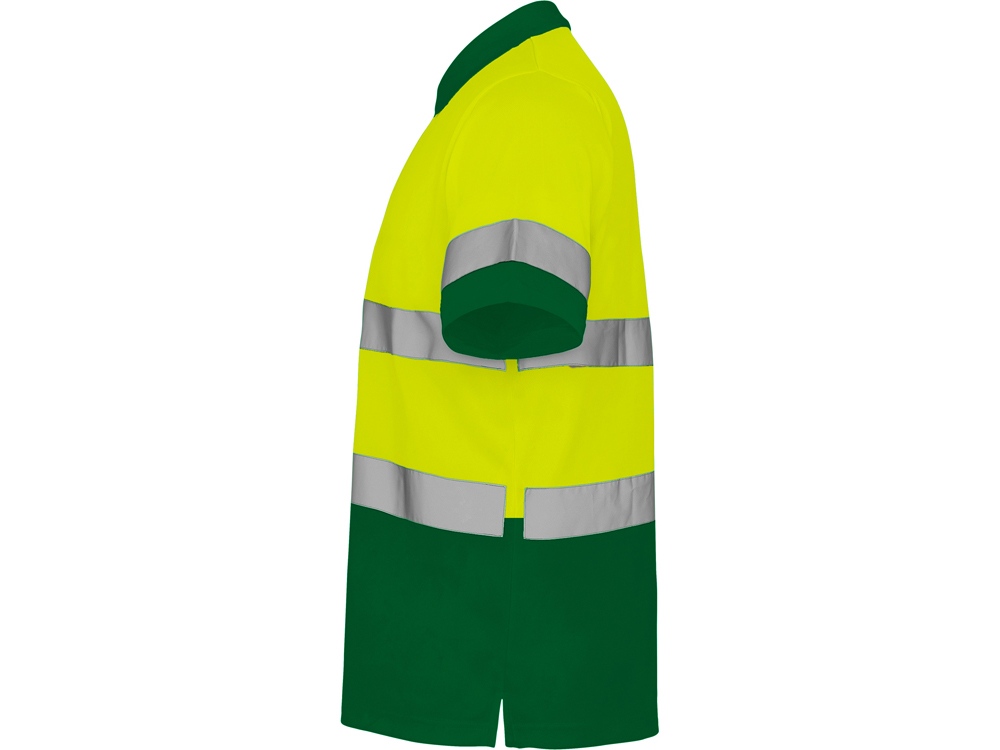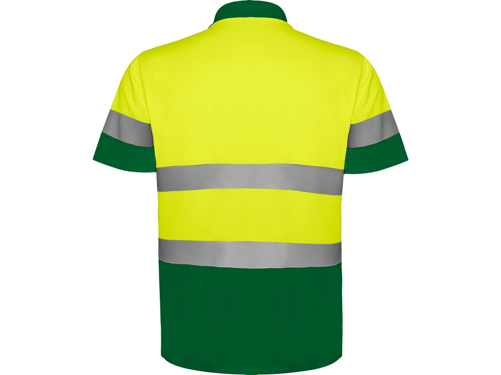 Техническая рубашка поло с короткими рукавами. Планка на 3 пуговицы. Воротник из риба 1 x 1. Две горизонтальные светоотражающие полосы на туловище и рукавах. Ткань предотвращает зацепление.
