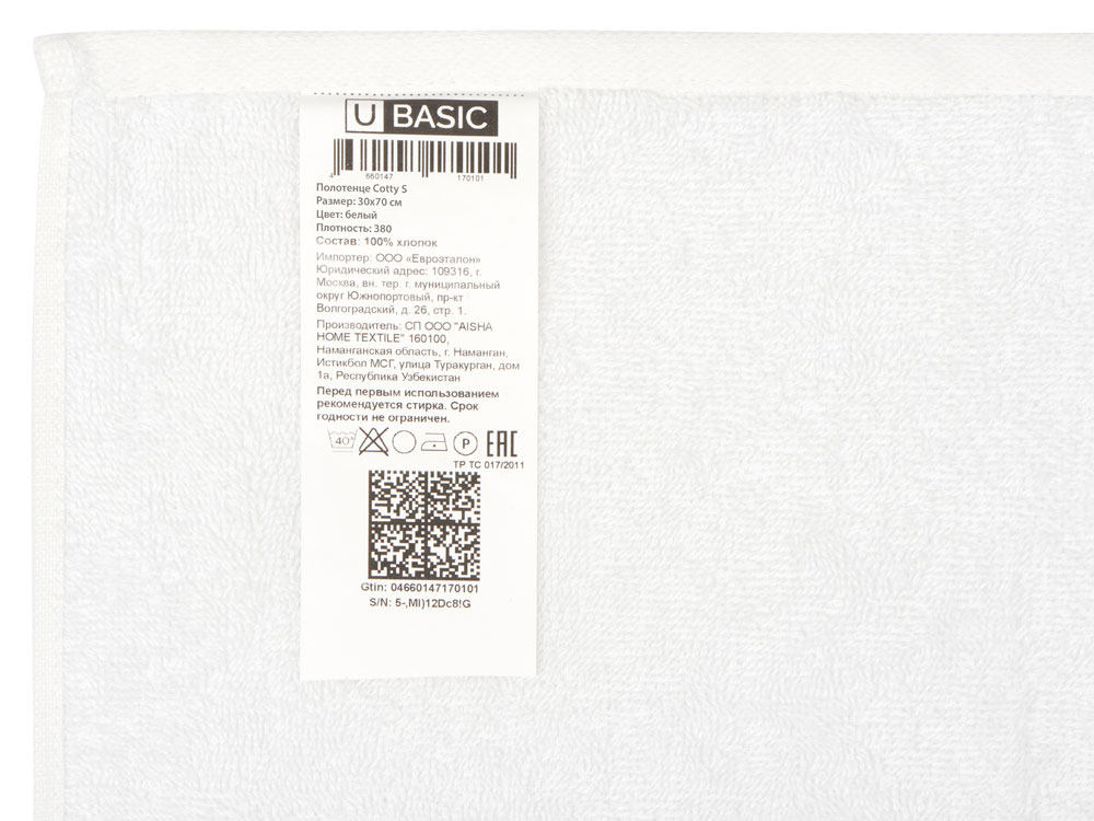 Полотенце Cotty S, 380, белый купить оптом и в розницу с нанесением логотипа в Нижнем Новгороде