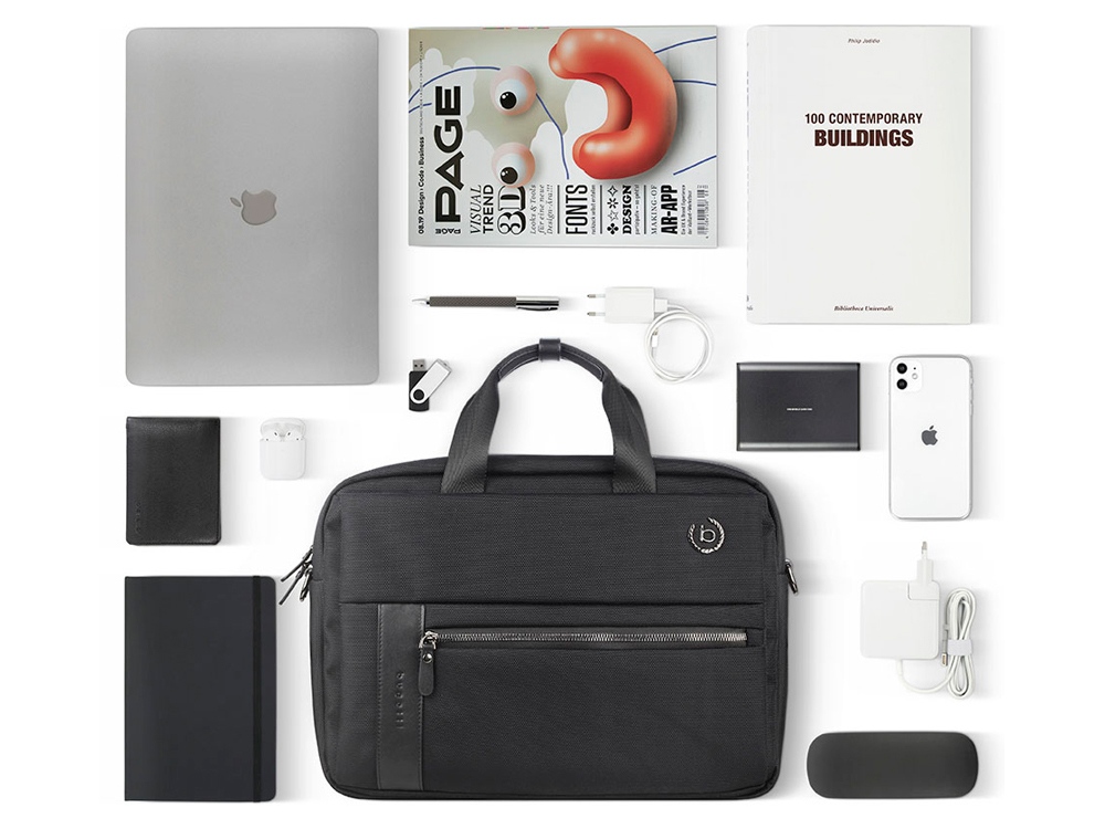 Портфель мужской BUGATTI Nero 15'', чёрный, нейлон 1680D/кожа, 42х10х30 см