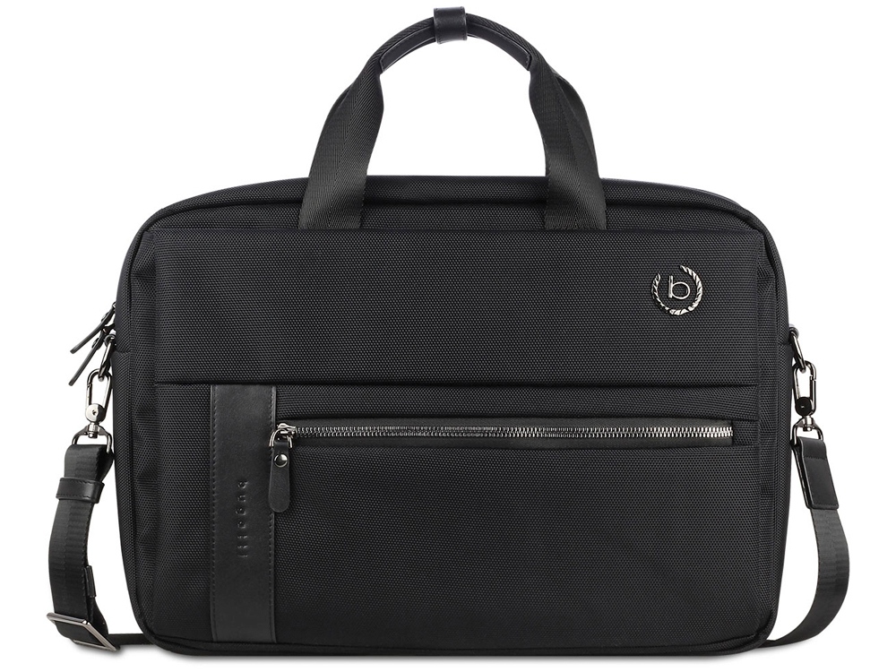 Портфель мужской BUGATTI Nero 15'', чёрный, нейлон 1680D/кожа, 42х10х30 см купить оптом и в розницу с нанесением логотипа в Нижнем Новгороде