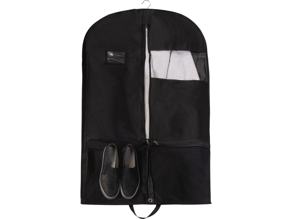Дорожный чехол из нетканого материала для одежды, который помогает перевозить одежду чистой и без складок. В сложенном виде напоминает форматом портфель, легко переносится с места на место благодаря удобным ручкам. Чехол имеет отверстие для крючка вешалки, на которую вы можете повесить одежду перед тем, как поместить ее внутрь. Прозрачное окошко позволяет узнать, что находится внутри, не расстегивая чехол, а кармашек для карточки — снабдить портплед указаниями или комментарием, касающихся одежды. Нижняя часть портпледа снабжена двумя карманами на молнии для обуви, не сообщающимися с основным отделением. Прочный материал портпледа не требует особых условий хранения и стирки, быстро сохнет и подходит для частого использования. - Карман для карточки/ визитки - Удобные ручки для переноски - Отверстие под крючок вешалки - Два отделения для обуви, каждое рассчитано на 1 пару - Прозрачное окошко, чтобы увидеть содержимое чехла