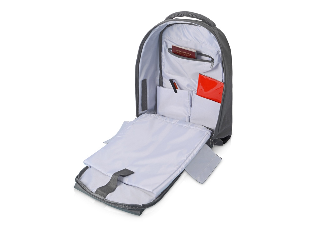 Этот противокражный рюкзак станет незаменимым при поездках по городу или в путешествиях, потому что в нем предусмотрены: - внутренний карман для ноутбука 15; - органайзер с тремя отделениями, одно - на молнии; - наружный карман на молнии; - боковой карман снаружи; - молния, расположенная близко к спине и затрудняющая несанкционированный доступ к содержимому рюкзака; - дышащая сетчатая спинка; - лямки с регулировкой длины; - ремень для крепления на чемодан; - раскрытие основного отделения на 180 градусов - благодаря боковым фиксаторам на липучках.