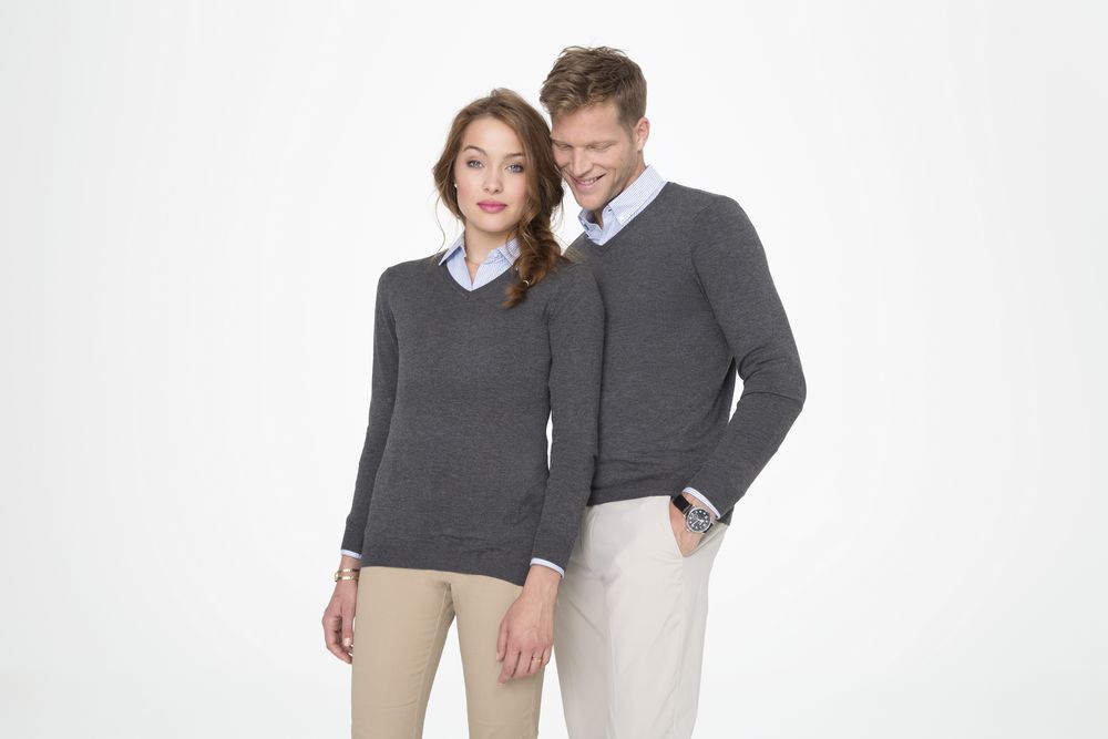 Облегающий пуловер с V-образной горловиной, который отлично сидит на фигуре.