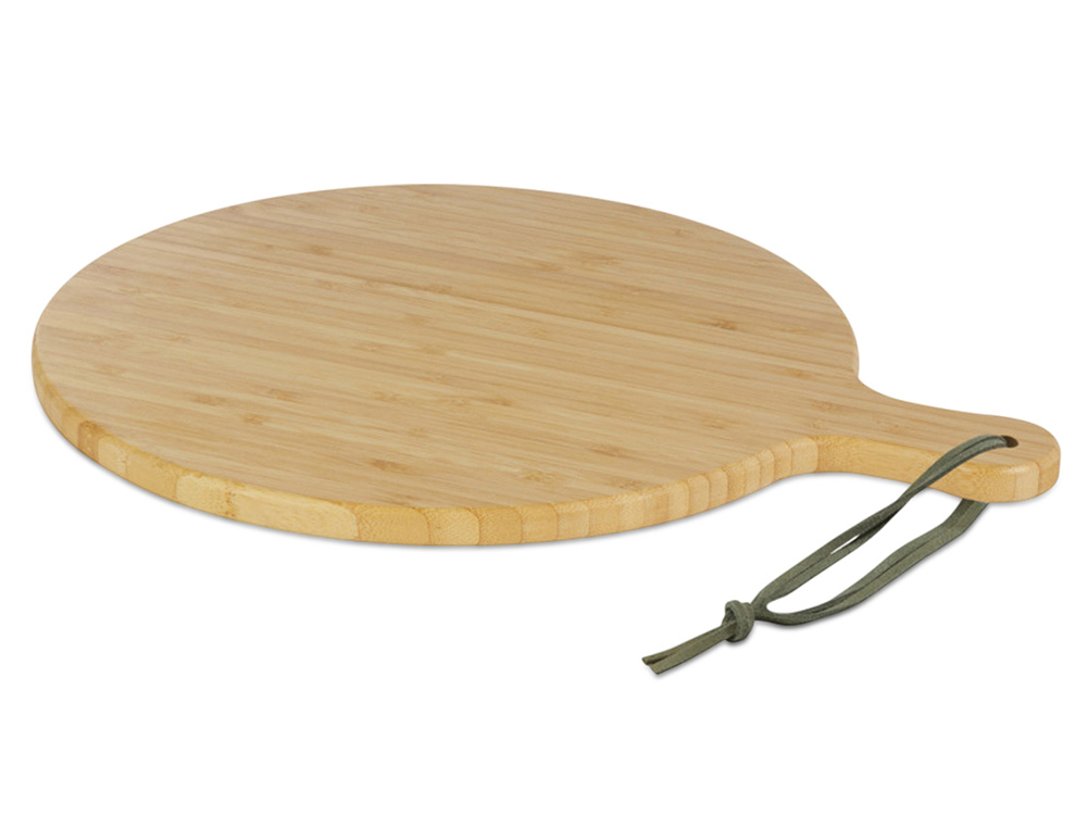 Разделочная доска Delys изготовлена из бамбука и идеально подходит для частных лиц и предприятий, которые предпочитают более экологичные товары. Диаметр доски: 30,5 см. Длина ручки: 8 см. Толщина доски: 1,4 см. Не подходит для микроволновой печи или посудомоечной машины.